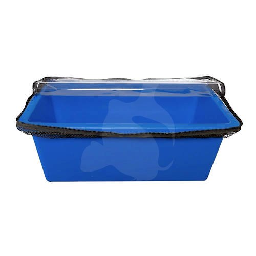På denne måde kan du - uden at fjerne overtrækket - let behandle, måle eller fotografere dine fisk, mens de forbliver i karret. Folien giver fri udsigt til fiskenes bevægelser, og netkanten sikrer, at overtrækket bliver på plads.