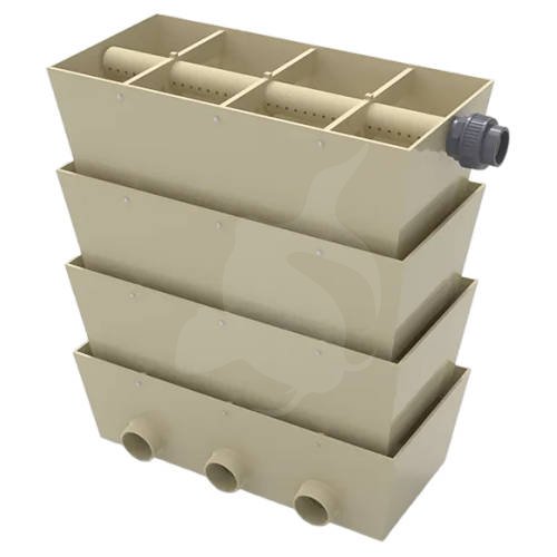 Den åbne konstruktion sikrer intensiv gasudveksling og stabile forhold for de nitrificerende bakterier. Kombinationen af høj gennemstrømning og stor medievolumen gør denne model ideel til anlæg, hvor der fodres kraftigt, eller hvor fiskebestanden stiller ekstra krav til filtreringen.